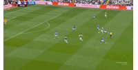 攻势很猛啊!埃斯特旺右路内切后兜射,皮球擦着立柱偏出