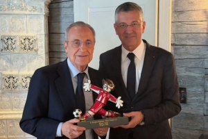 皇马官方晒照,主席弗洛伦蒂诺与拜仁主席海纳在赛前会面