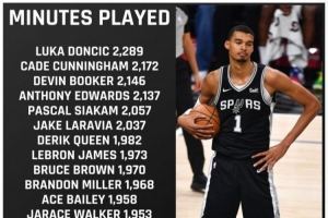 美记Nate Duncan列出了本赛季出场时间比文班亚马多,但因65场规则没有评奖资格的球员,按出场时间依次是东契奇、坎宁安、布克、爱德华兹、西亚卡姆、拉拉维亚、奎因、詹姆斯、布鲁斯·布朗、布兰登·米勒、贝利、贾雷斯·沃克、艾顿、雷诺、布莱克、席尔瓦、迪亚巴特、八村塁。