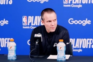 记者问:“最后一个问题。教练,你能谈谈情绪上的转变吗?周五晚上战胜勇士是一场情绪激昂的胜利,然后进入这场比赛,这是你们的第一场季后赛,你能谈谈在周三的比赛前如何重新调整,让队员们准备好吗?”